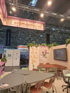 Ein besonderer Dank gilt unserem Partner Eromesmarko, an dessen Messestand wir in diesem Jahr Teil des Teams sein durften. Die Zusammenarbeit hat einmal mehr verdeutlicht, wie wichtig es ist, pädagogische Konzepte, Raumgestaltung und Möblierung ganzheitlich zu denken. Durch nachhaltige Möbel- und Farbkonzepte sowie individuell entwickelte Ausstattungslösungen entstehen Lernräume, die moderne Pädagogik optimal unterstützen.